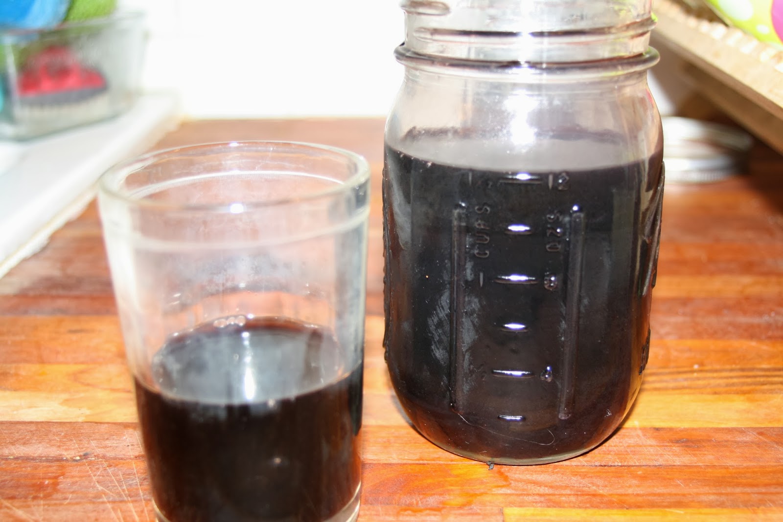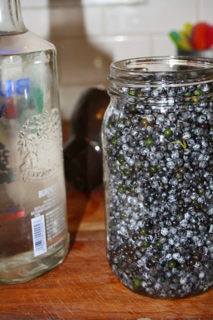 The infusion will be such a dark purple it will look almost black! Good for Halloween martinis, no?? put it into a clean pint jar (you’ll have about 2 cups) and add about 1/3 cup of sugar. Seal it back up and let it settle down for a few more weeks. This part can be done in a dark cupboard or liquor cabinet. Once the sugar has dissolved, you are ready to start DRINKING! We sip on it when we had a cold – it is a rich source of antioxidant and vitamin C (and with that much vodka, you won’t care as much about having the sniffles).