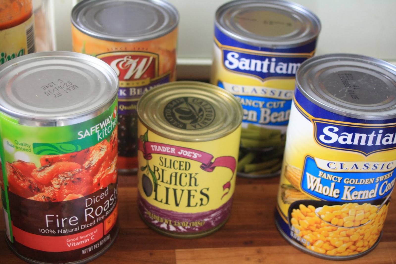 | What have you got in YOUR cupboard?? Tomatoes, corn and some kind of beans make this “Mexican”. |
