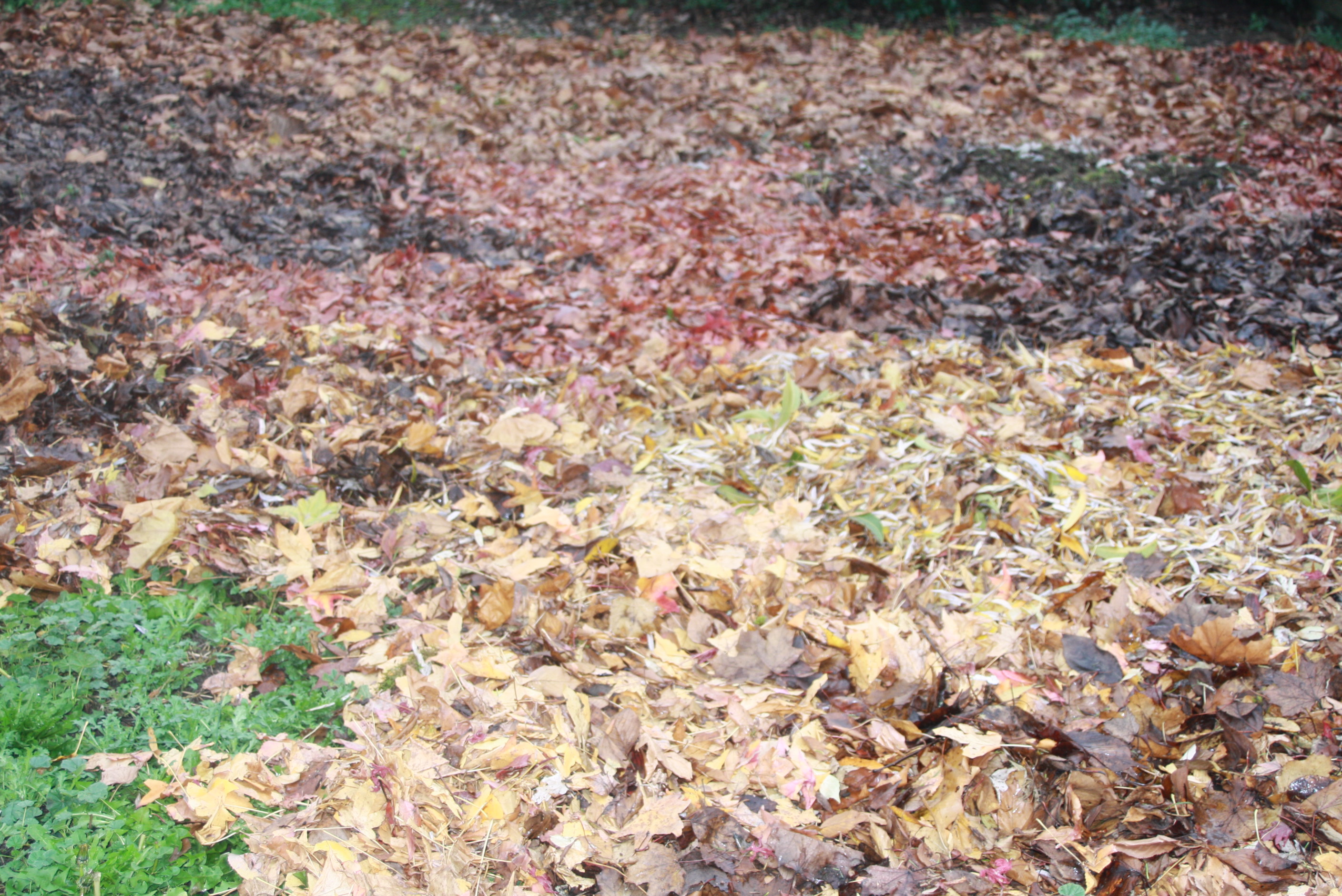 So here’s my tip: If you have some leaves, rake them up off your lawn and put anywhere you need the soil to be weed-free and plant-ready! If you want to kill off a part of your grass and put in raised beds or trees, go rake the leaves out of your NEIGHBOR’S yard and do the same thing 🙂 Two things to keep in mind. #1. Don’t use walnut leaves- they are a kind of plant poison. #2. Spread them out between 3 and 4 inches deep – they will be less effective if they aren’t deep enough.