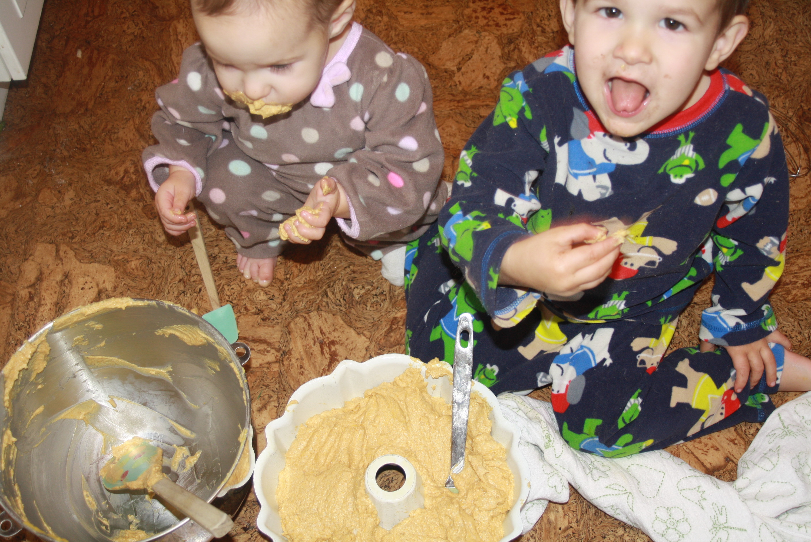 - Have your helpers spoon batter into bundt pan and bake until a wooden toothpick or skewer inserted in center of cake comes out clean, 45 to 50 minutes. Cool cake in pan for about 15 minutes, then turn it out onto a cooling rack or plate.