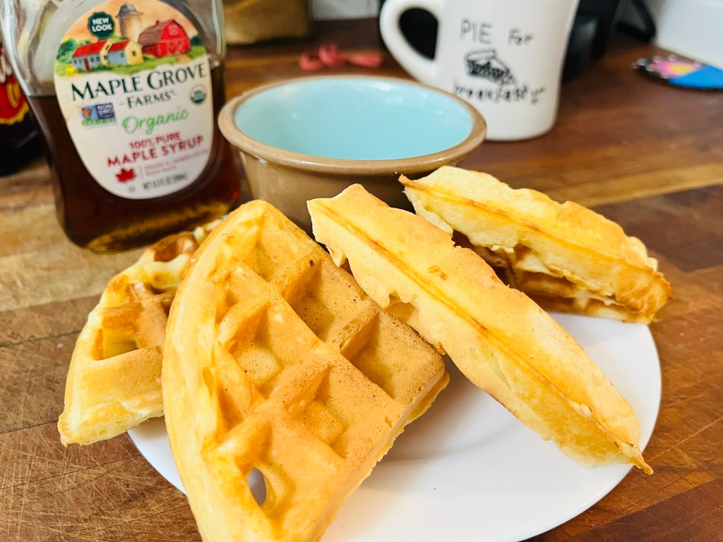 Makes about 4 large waffles. Double or triple for large crowds, or if you want some for the freezer.I