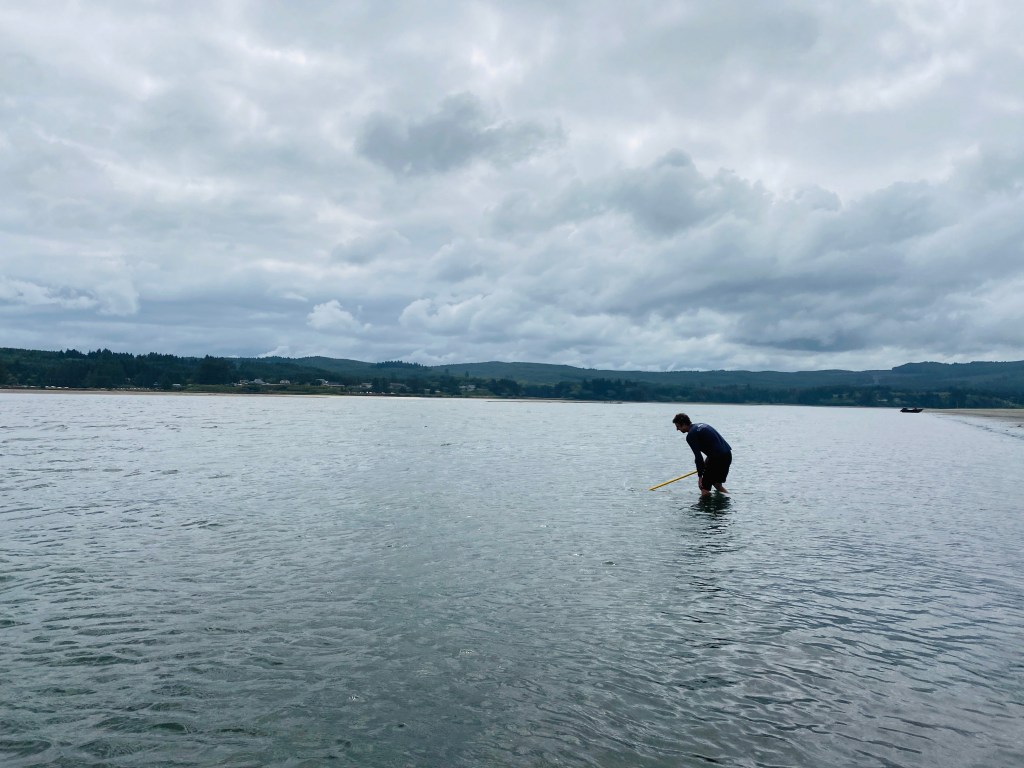 So in 2020 there was some weird thing where we all had to stay away from each other, right? Well that was really fun except that we got really bored after a while and I had the genius idea to do some crabbing! But it was May and the crabbing wasn’t good, so I found this guy on YouTube (P.K. Yi at OregonLife) who was doing some CLAMMING at the Oregon coast. I had never been clamming and so I checked the tide tables, got my shellfish license, and convinced my family – all extremely skeptical – to load up in the boat and head to Netarts Bay one morning.