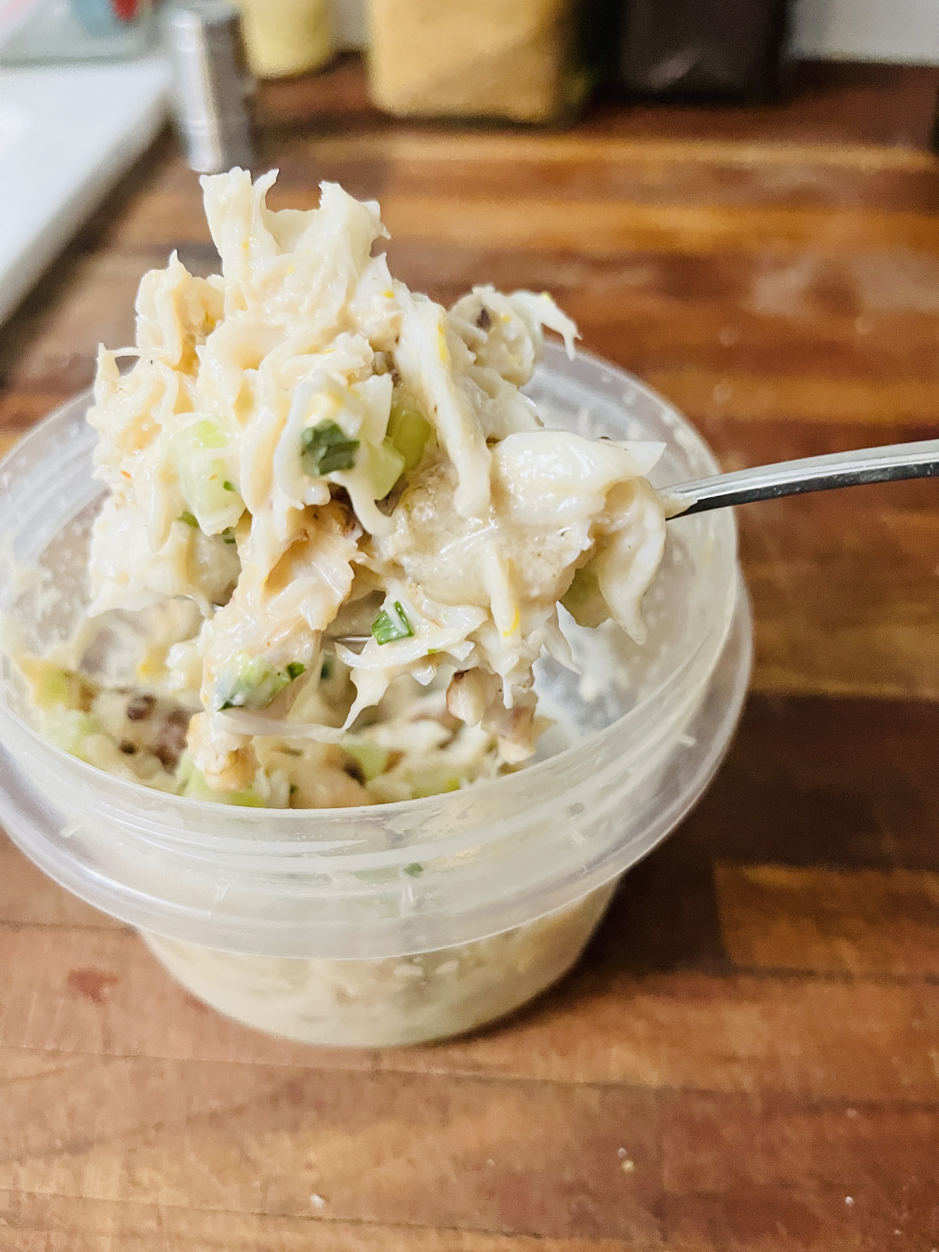 OPTIONAL: Depending on my mood and what is in my fridge, I might also add black olives, capers, bay shrimp, dill, boiled egg, or bacon bits… Just taste as you go, it’s easy to overwhelm the subtle flavor of the crab 🦀