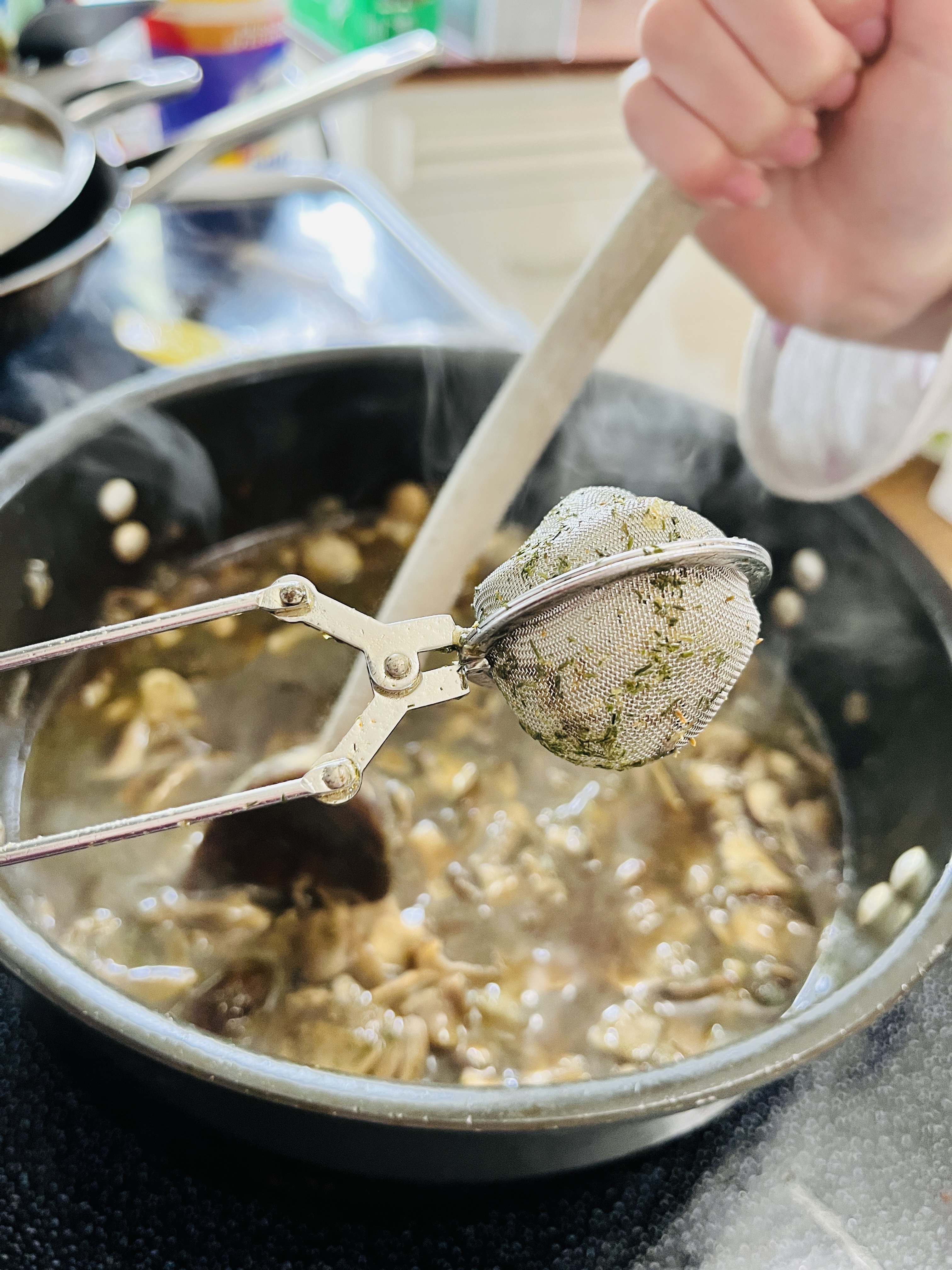 This is one of my all-time favorite recipes for fall! There used to be a vegetarian/vegan restaurant in N. Portland in the 90’s called Old Wives Tales – back before they were EVERYWHERE in Portland! They made the most amazing mushroom soup. My friends and I would make the trek weekly from suburbia land to pig out at their locally-sourced salad bar and eat vats of this soup. I don’t know if my recipe is as good as theirs, but we still fight each other to eat it around here… in fact! I had to chase off my husband and daughter TWICE while making it this morning – lol!!