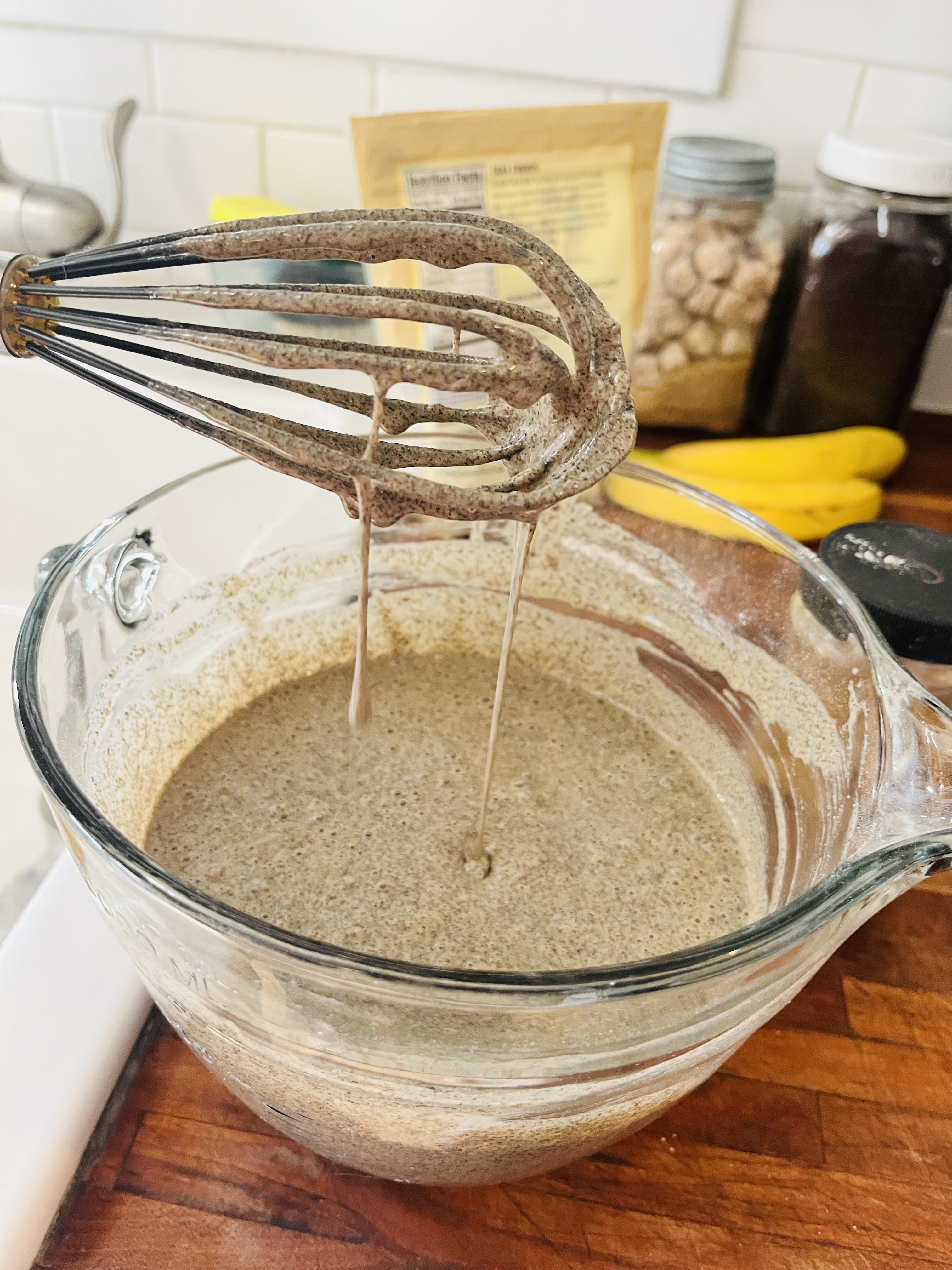 Heat a lightly greased griddle or pan over medium heat. In a medium bowl, whisk all pancake ingredients until just combined. This batter should be a bit thin and may thicken after a few minutes, but thin is good.