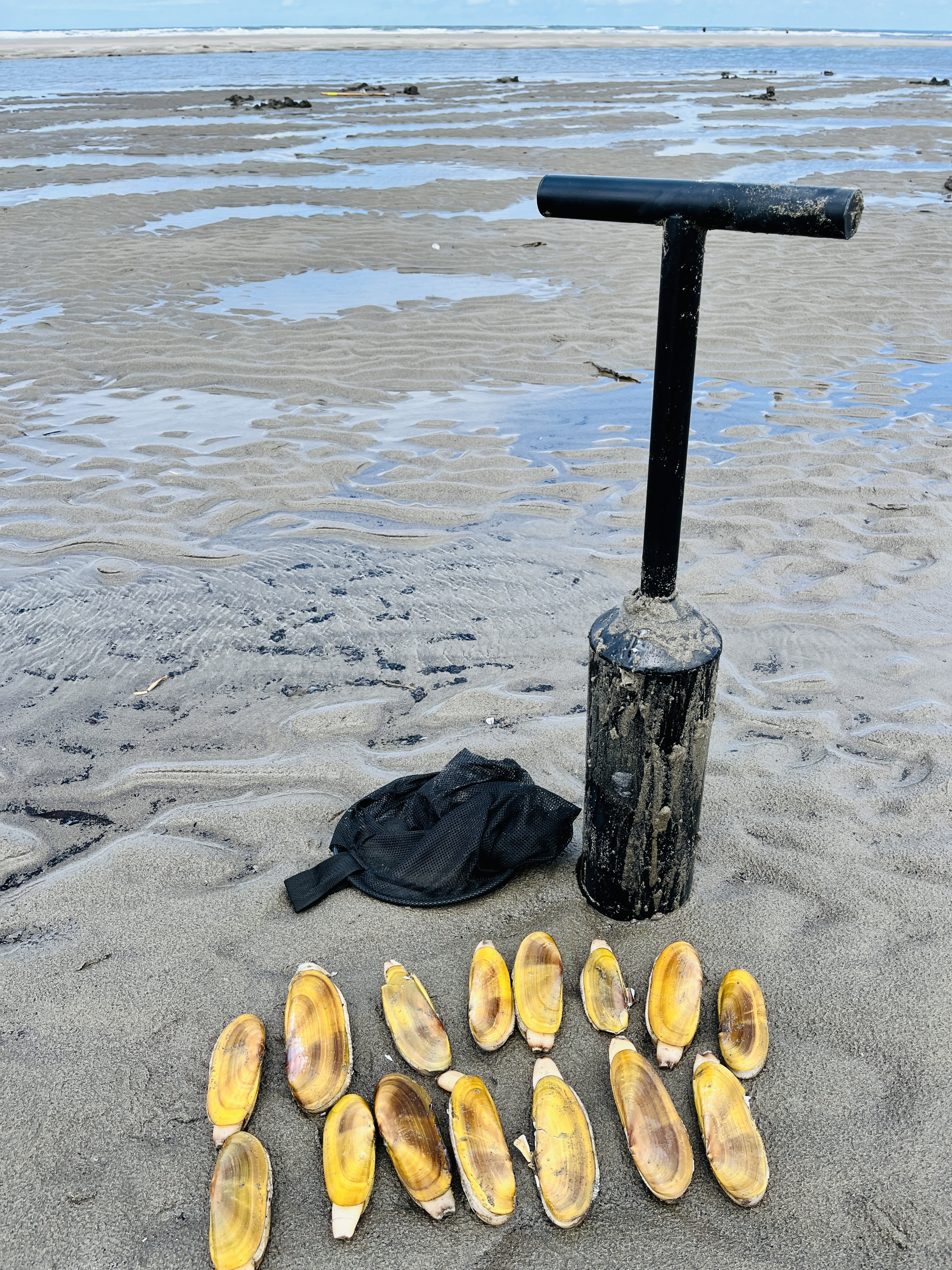 BUT, the digging of said clams is a little tide-dependent and since all the good tides were school days or family holidays we hadn’t had a chance to get any others. Until LAST WEEK. School’s out for summer so I headed to Seaside and managed to catch a limit in my first try!!!