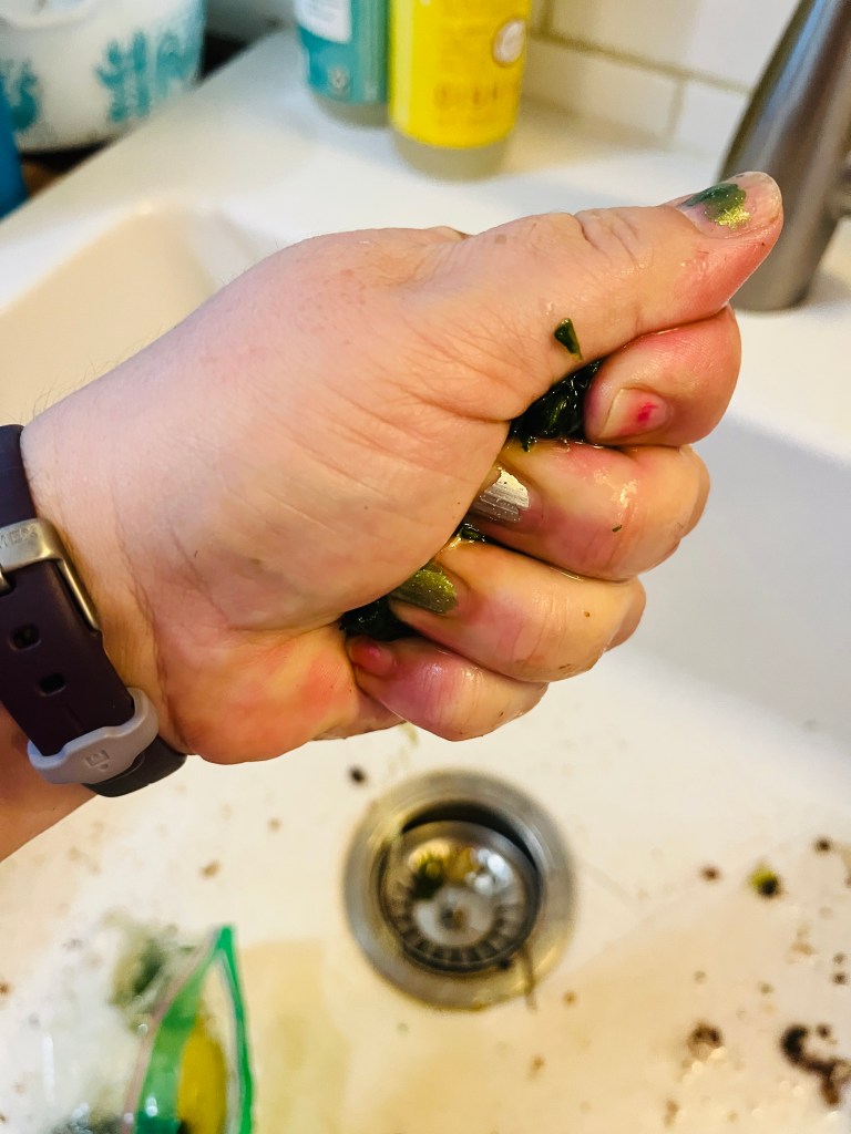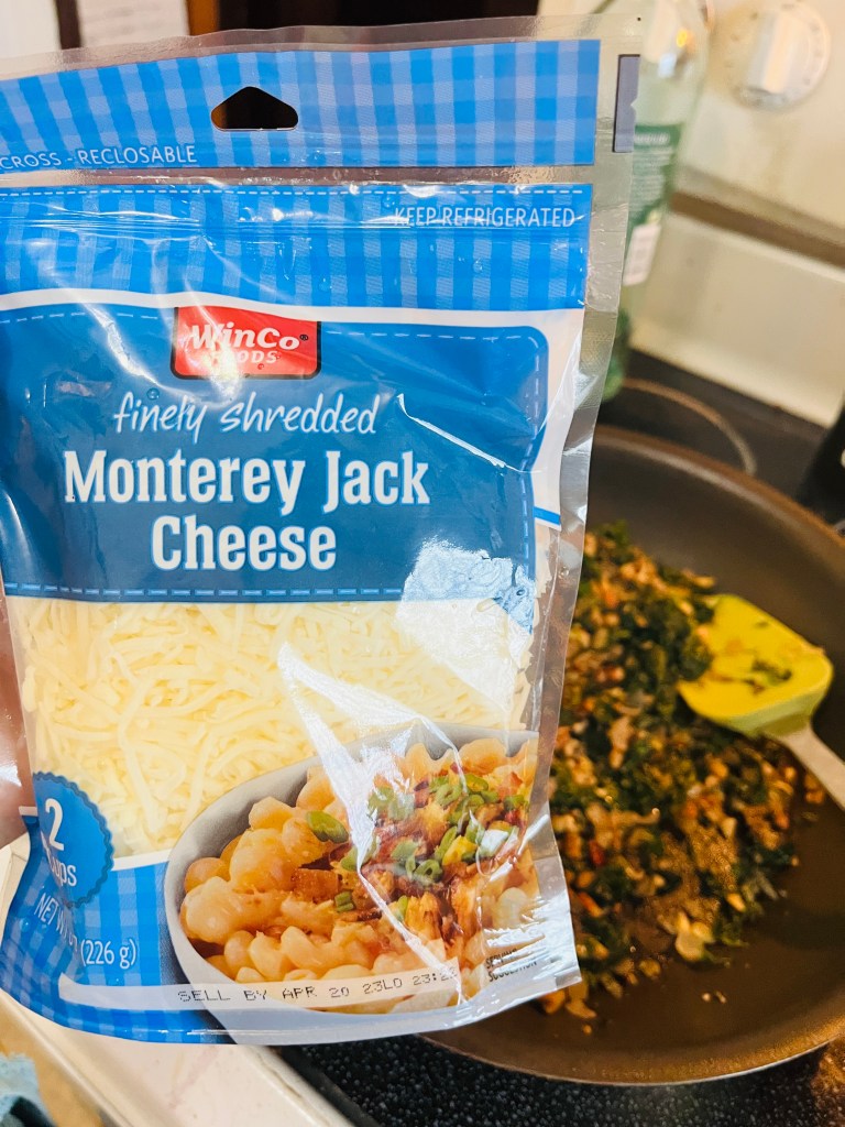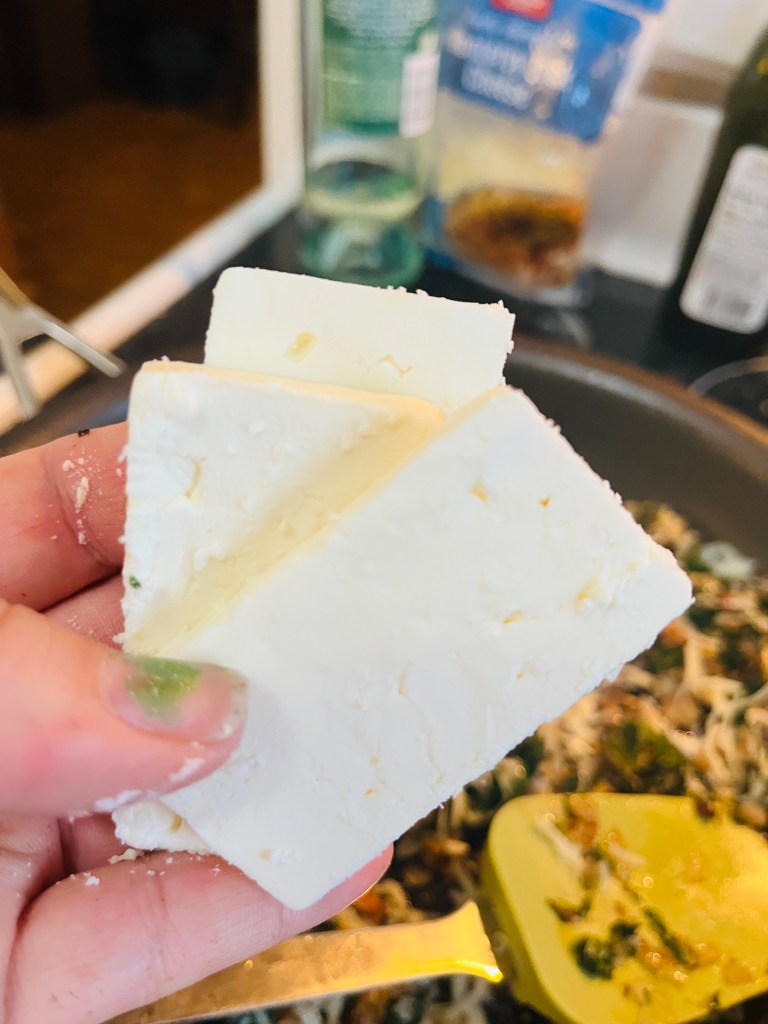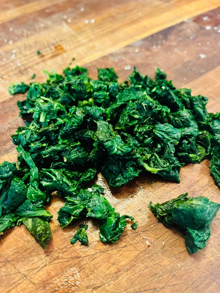 - 5 ounces frozen chopped spinach, defrosted and squeezed dry